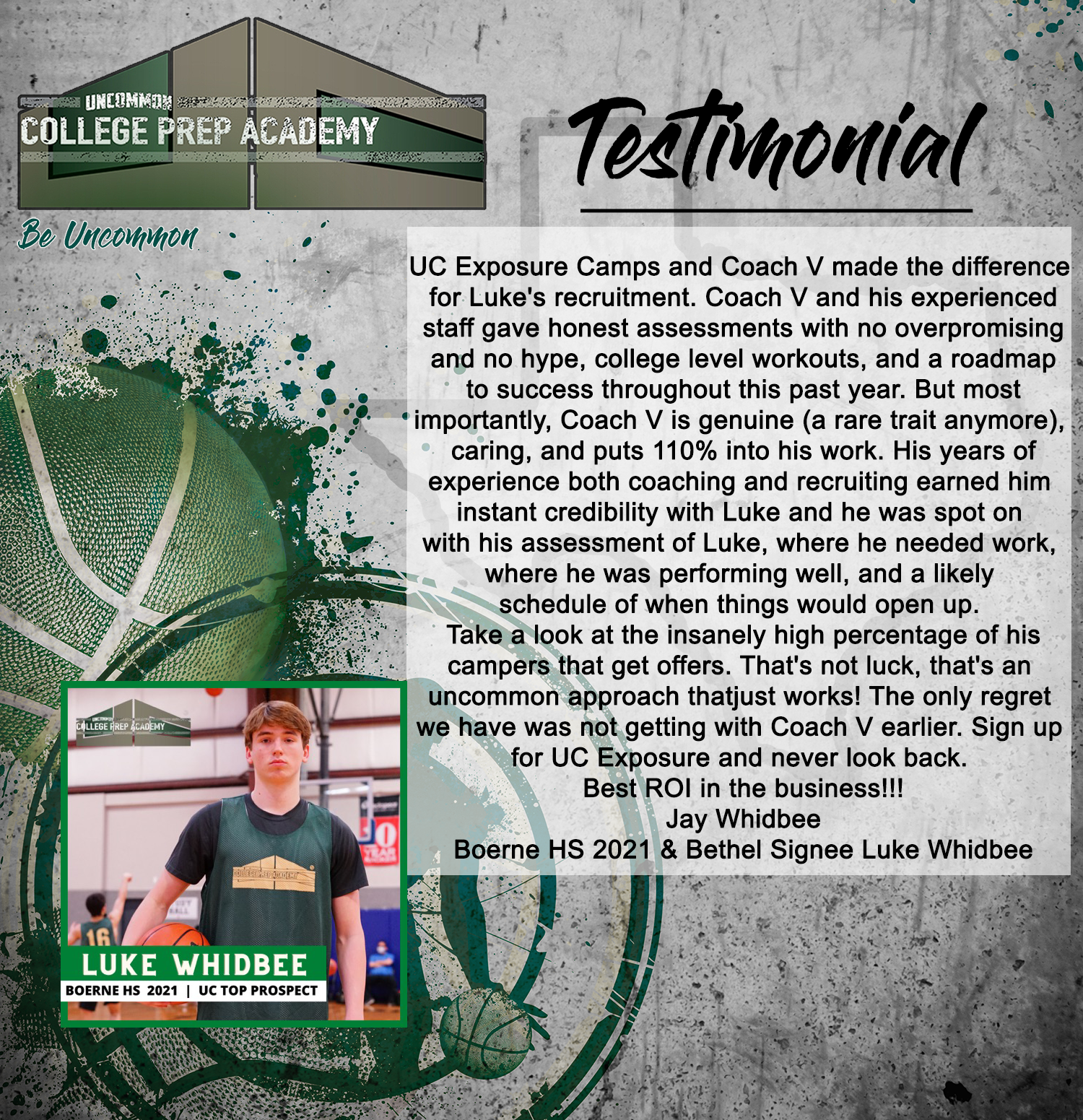 The UnCommon Exposure Camp caught us off guard, but it was clear from the beginning that Coach V was genuine and not motivated by greed. Unlike other camps/showcases we have paid to participate in, your event gave my son a FAIR shot to showcase his talent in front of college coaches. I believe in your game plan for my son, and we now have a road map to increase Shane’s recruitment after attending your camp. We will trust the process and wanted to thank you for going beyond to help my son.